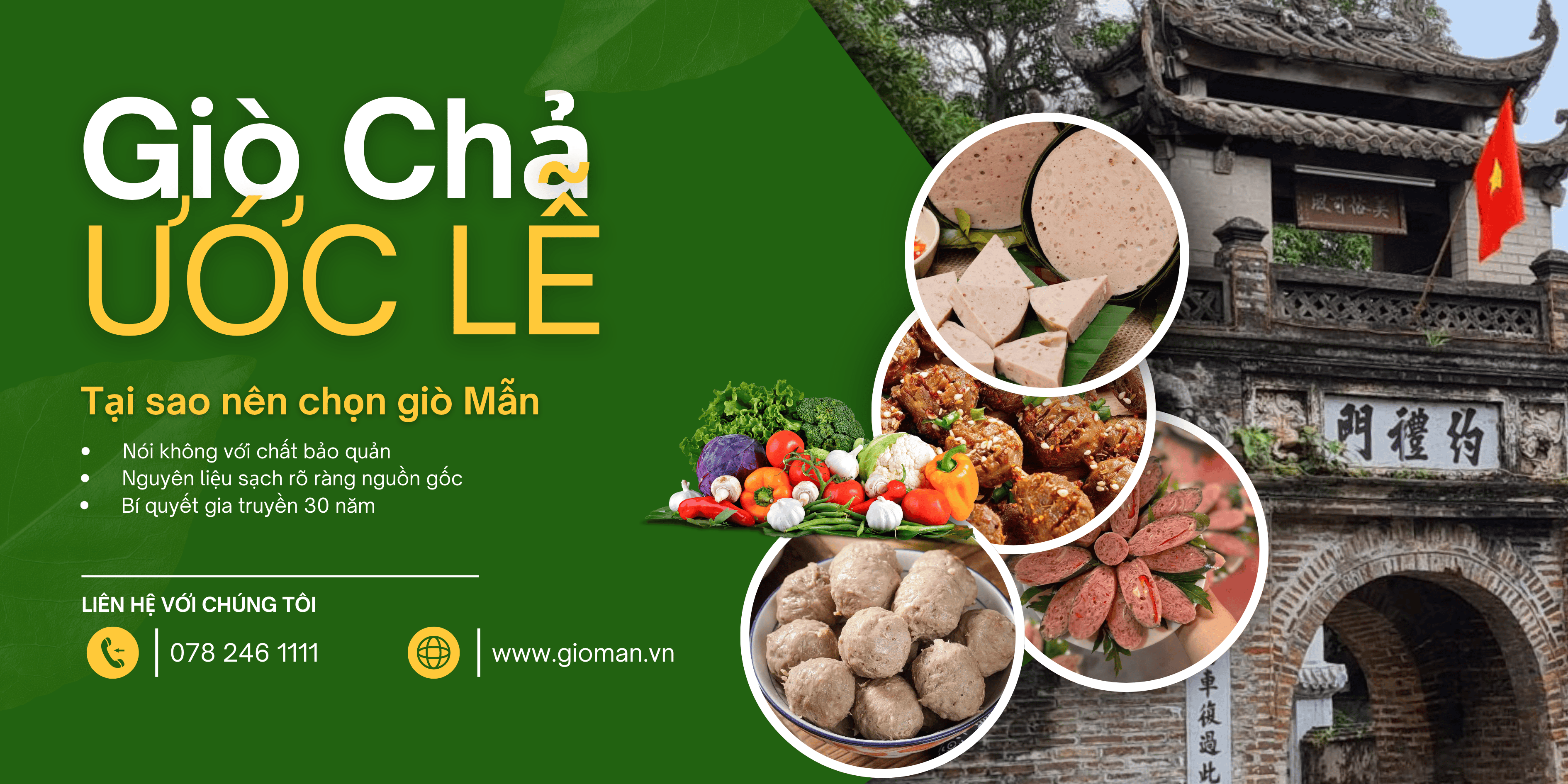 Giữa nhịp sống hiện đại, Giò Mẫn vẫn giữ trọn hương vị giò chả truyền thống Ước Lễ qua hơn 30 năm gìn giữ và phát triển. Thương hiệu ra đời từ tình yêu nghề của gia đình, nối tiếp tinh hoa làng nghề cha ông để lại, trân trọng từng miếng giò, từng hương thơm đặc trưng của giò quê hương. Chúng tôi lựa chọn 100% nguyên liệu thịt heo tươi ngon, rõ nguồn gốc, không sử dụng hàn the, không chất bảo quản, đảm bảo an toàn sức khỏe cho mọi bữa cơm gia đình Việt.